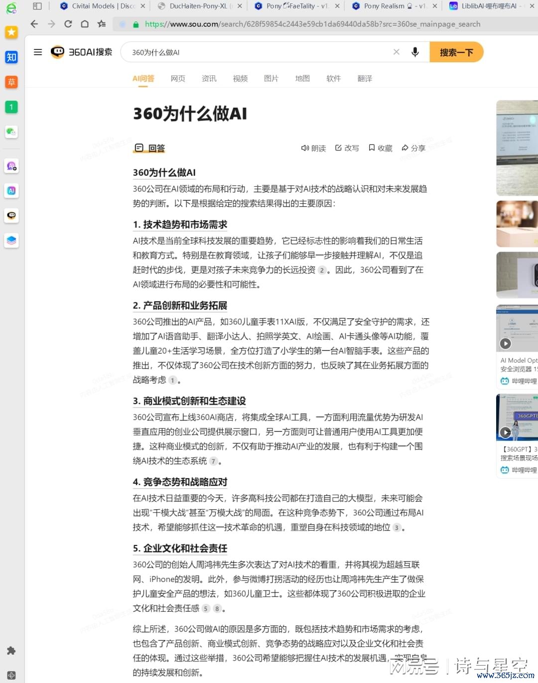 大致两个原因,第一是原有赛道已经被短视频挤压的没有了生存空间,转型短视频又为时已晚,不如押宝AI;第二是市值管理的需要,360股价不振,需要新的噱头来支撑。