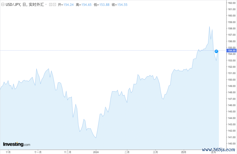 这使得,日元汇率大幅反弹,美元兑日元汇率从三十四年来的最高纪录160.245一度回落至151.86日元。截至目前,日元兑美元位于154.50日元一线,年内累计跌幅接近9%。