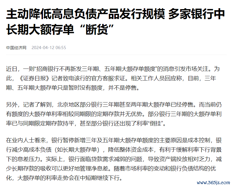 比如多家银行的中长期大额存单断货: